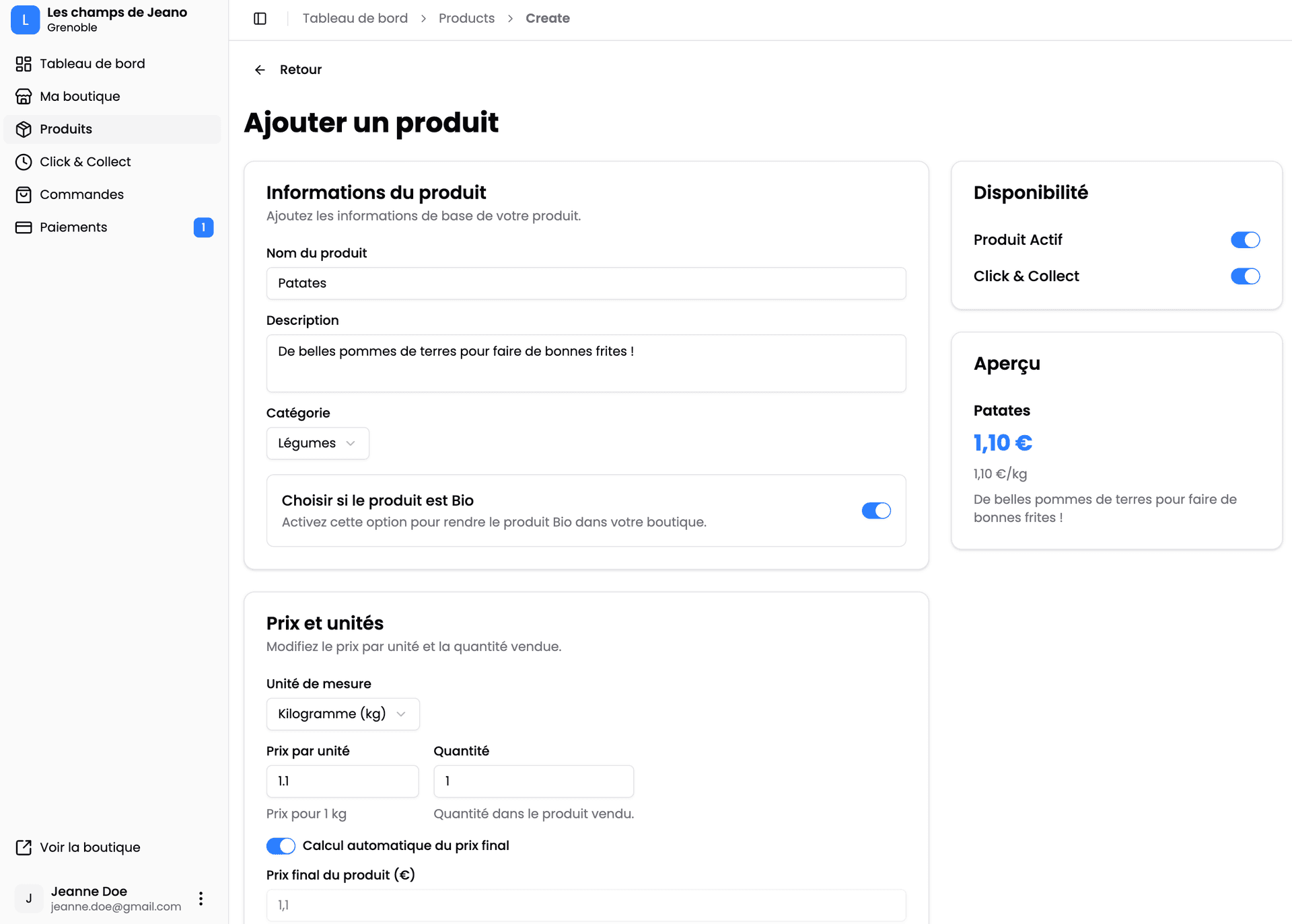 Gérez facilement votre boutique, et ajoutez des produits en quelques clics seulement.